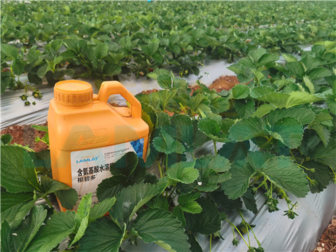 定植后的草莓,可根據(jù)土壤條件和草莓長勢進行追肥,如想使草莓長勢壯而不旺,可使用翠姆根碧多,促使根系發(fā)達,不會出現(xiàn)作物旺長現(xiàn)象,整體長勢健壯。