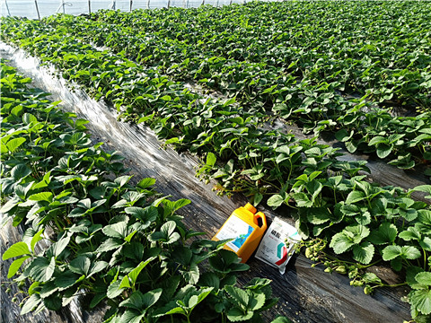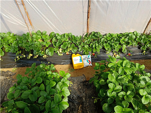 花期果實成熟期:主要抑制灰霉病、白粉病;蜜蜂輔助授粉,減少畸形果產(chǎn)生;做好防凍措施,尤其是靠近棚門的位置, 以免凍害影響。這個時期32.5%苯甲嘧菌酯懸浮劑1500-2000倍, 7~15天1次2、5%阿維菌素乳油2000倍,葉面噴施, 防治蚜蟲、紅蜘蛛等。用藥時,將蜜蜂箱移出大棚或移到未施藥棚室內(nèi)。這個時期主要是使用膨果肥,采果肥,復壯肥,為持續(xù)產(chǎn)出提供能量。